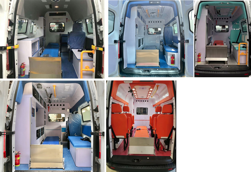 | 随底盘选装侧拉门踏板、前脸.选装长牌爆闪**或泰格型、米高蓝内嵌式**,选装长牌爆闪**时车高2580mm,对应整备质量为2550kg;选装泰格型、米高蓝内嵌式**时车高:2450mm;选装车顶换气扇高2550mm,对应整备质量为2470kg.车顶四周可选装一个或多个爆闪**示灯。配备医疗器械柜、氧气瓶、担架、消毒灯、标志灯及**报器等专用装置.ABS系统**器型号:EV5051,生产厂:博世汽车部件 (苏州)有限公司.发动机**净功率89kW.选装8人座椅内饰和7人座椅内饰.选装可直接供电的ETC车载装置.选装外观.该车配备汽车事件数据记录系统(EDR),选装内饰. |